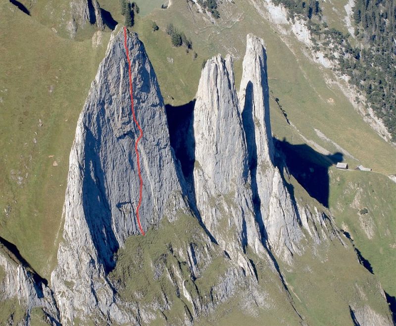 Макар самият връх да е сравнително нисък, а маршрутът не е от най-дългите big wall-линии, не могат да му се отрекат несъмнените естетически достойнства и голямата трудност. Красивата, почти права линия преминава през средата на Ветслихе Драйфалтигкайт (Westliche Dreifaltigkeit, Западната Троица в свободен превод от немски). Тази импозантна кула се издига над обширната алпийска долина срещу Боденското езеро. Скалата от сивкав варовик с отлично качество в по-голямата си част е отвесна. По нея има надвесени фрагменти и тавани.
