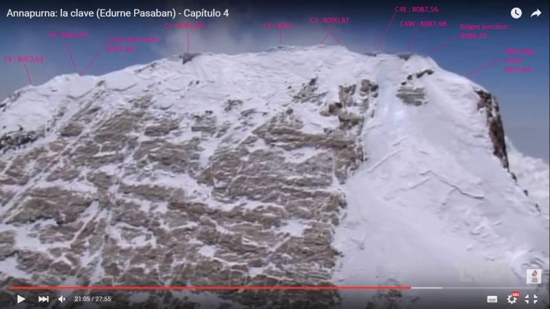 Въпросът ми е: “Може ли стигането до която и да било от тези точки да се смята за изкачване на Анапурна, или не, при положение, че т. нар. Централен връх е висок 8013 м, а Източният – само 7986 м? Интересуват ме вашите мнения, особено тези на алпинисти. За мене всички досегашни изкачвания трябва да се смятат за валидни и да бъдат признати, защото съм сигурен, че повечето алпинисти вярват, че наистина са били на Главния връх на Анапурна. Но какво да правим в бъдеще, след като вече знаем за какво става въпрос? Дали да бъдат зачитани само стиганията до коти С2 (Главния връх) и С3, или до всички точки от гребена западно от кота С1. Или западно от кота С0? Какви са вашите мнения. Моля, уведомете ме.