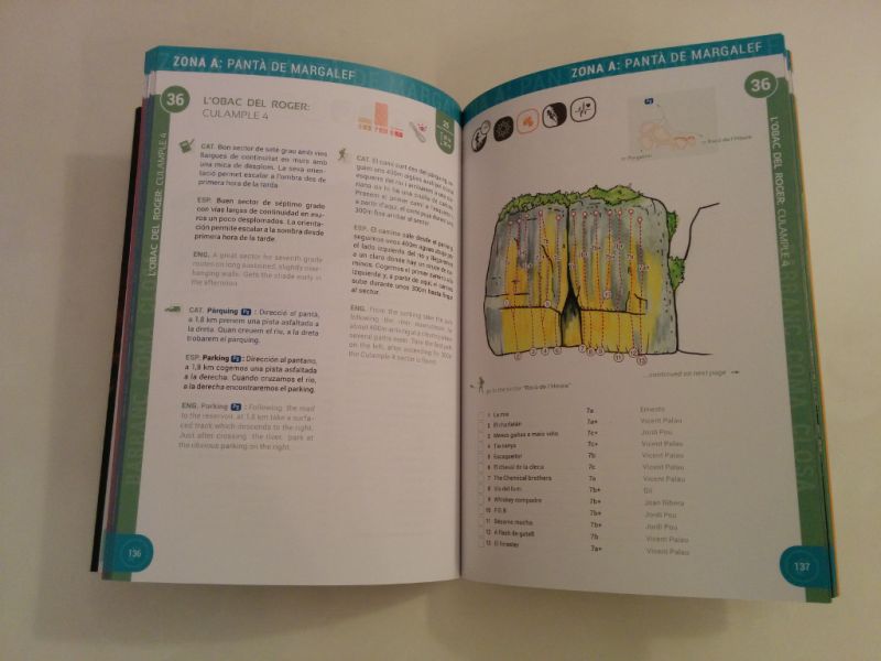 Първата част на пътеводителя, който е издаден на три езика – испански, каталонски и английски, съдържа въведение, история на катеренето в Маргалеф, кодекс на добрите практики, практическа информация и указания как да си служим с помагалото.