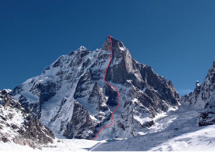 Тази великолепна линия е премината премиерно през 1972 г. в истински “хималайски” стил за почти две седмици. Получава оценка 6А по съветската скáла и донася на украинците Юрий Григоренко-Пригода, Виталий Бахтигозин, Арнолд Вселюбский, Владимир Ткаченко и Владимир Шумихин златните медали в шампионата на някогашния Съветски съюз в клас “Технически сложни изкачвания”. Следващите две изкачвания са направени също в експедиционен стил. Едва преди две години маршрутът бе преодолян в алпийски стил от грузинците Георгий Тепнадзе и Арчил Бадриашвили.
