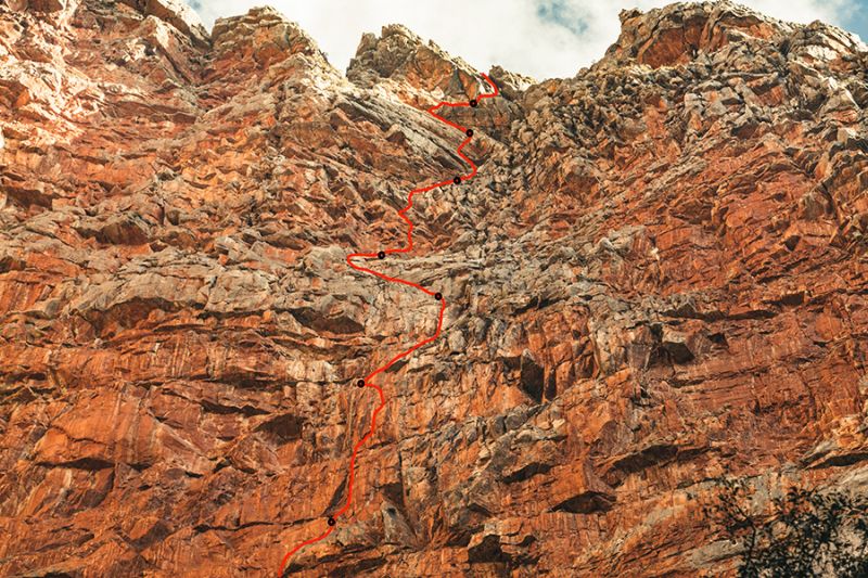 Инес, Лука, Йозеф и Пол не оставиха нито един спит или ринг. Кварцитът с много високо качество се оказа идеален за осигуряване на клеми и френдове. Единственият инвентар, останал на стената, са няколко клеми и скални клина, използвани за организиране на рапели покрай прокараната линия.