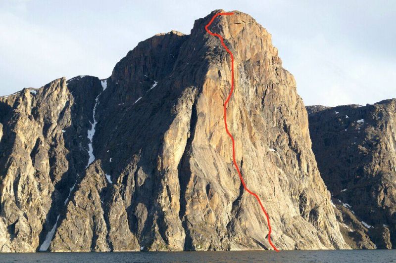 Преди време писахме за първите изкачвания на екипа. Сега ще стане дума за главното му постижение – премиерната линия в района на Акулиарусег (Akuliaruseq) и Кангек (Kangek). Дългата 22 въжета “Nightwatch” има трудност 7c+.