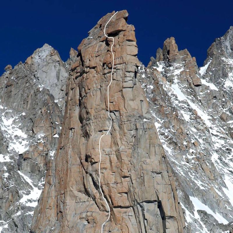 рокараният от Арно Пти и Нина Капре нов маршрут по великолепния гранит на Гран Капюсен се състои от 12 въжета от които само две (половината на първото и краят на второто) се покриват с други турове. Швейцарско-френският екип не успя да го премине класически. Арно даде оценка от 7а до 8b на преминатите на класика пасажи.