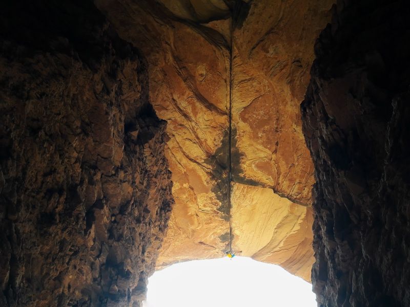 Същинският “Crucifix Project” – т. е. най-трудната версия за преодоляване на огромния таван, е преминаването отляво надясно (на първата снимка).