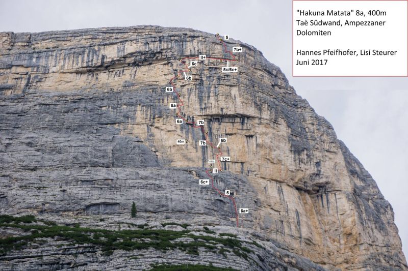 Лизи Щойрер (Lisi Steurer) и Ханес Пфайфхофер (Hannes Pfeifhofer) прокараха без използване на изкуствени опорни точки нов маршрут по южната стена на Тае (Taè) или Спалти ди Кол Бекеи (Spalti di Col Becchei) в Доломитите. 400-метровата линия получи името “Hakuna Matata” и оценка 8a.