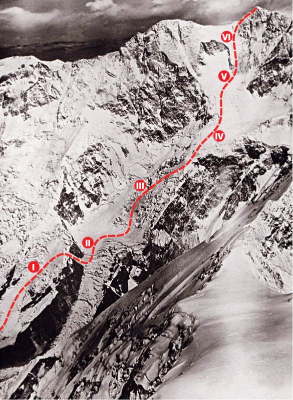Маршрутът на първото изкачване на Кангчендзьонга през 1955 г.