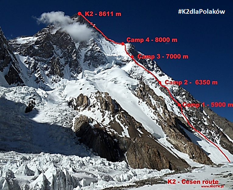 Поляците ще действат по югоизточното ребро – по т. нар. Маршрут на баските (или Маршрут на Чесен). Той следва реброто между маршрута на Кукучка-Пьотровски (Kukuczka-Piotrowski Route) и Класическия маршрут по Реброто Абруци. “Маршрутът на баските е оптималният и дава най-големи шансове през зимата. Бърза, неособено сложна линия” – смята Януш Голомб.