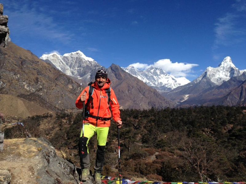 Мохамед Али Садпара малко над Намче Базар – на заден план се виждат Ама Даблам (вдясно),