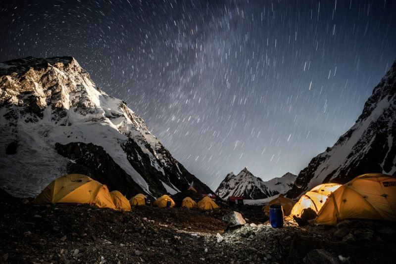 Нощ в базовия лагер с изглед към К-2