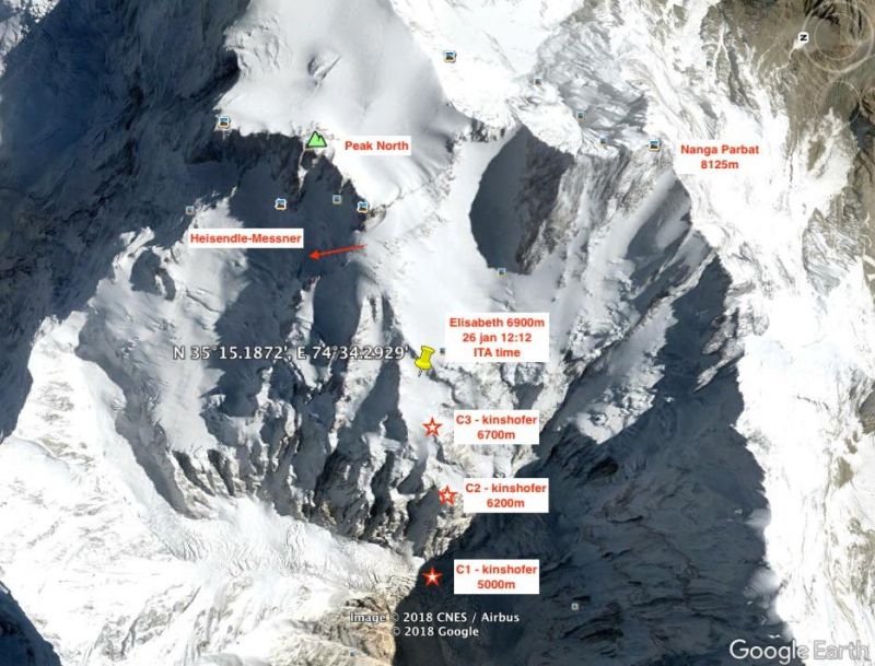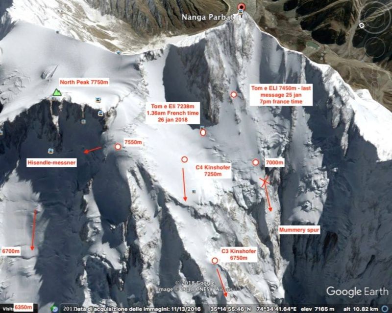 Предлагаме ви няколко снимки с означения, които представят ситуацията на Нанга Парбат преди началото на акцията за спасяване на французойката Елизабет Револ и поляка Томаш Мацкиевич