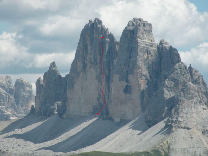 ****“Emilio Comici, Giovanni & Angelo Dimai” или само “Comici-Dimai” (6a+/ 6b), изкачен за първи от Емилио Комичи и братята Джовани и Анджело Димаи на 13 и 14 август 1933 г.