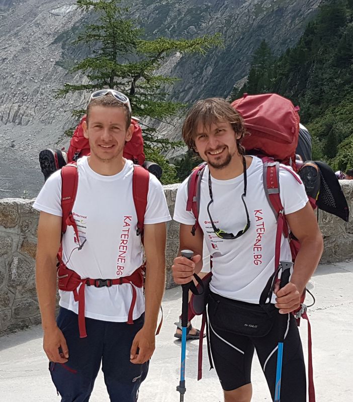 “Ние сме Станислав Атанасов и Алеко Държиков, съответно от Стара Загора и София –пишат те. – Предполагаме, че донякъде думата “алпинисти” може да ни опише и да се наречем така. В края на лятото на 2017 г. отидохме в Алпите, за където си бяхме избрали високи цели, които да постигнем в къс срок. В тази презентация ще покажем какво ни се случи в краткото, но изпълнено с променливи емоции време, прекарано в тези красиви планини. В рамките на нашето пътуване преминахме маршрутите “O sole mio” (6b+)** на Гран Капюсен (Grand Capucin), “République Bananière” (6c+)*** на Егюий дьо ла Репюблик (Aiguille de la République, Иглата на Републиката), “Emilio Comici, Giovanni & Angelo Dimai” или само “Comici-Dimai” (6a+/ 6b)**** на Чима Гранде (Cima Grande) и направихме опит по северната стена на Пти Жорас”.