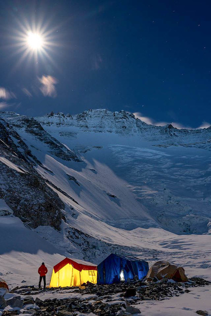 Тенджи в лагер 2, на фона на пълната луна над