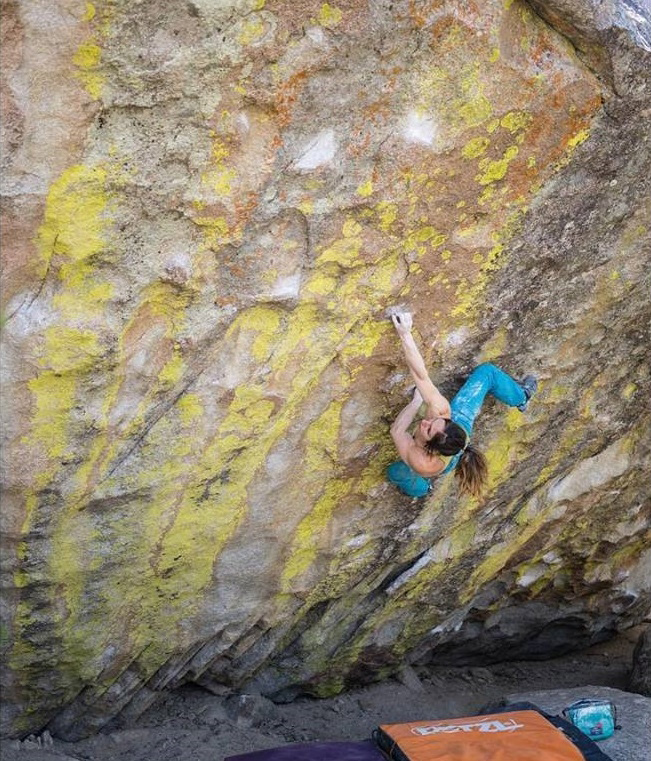 Алекс Пучио (Alex Puccio) бързо (както само тя умее – от пет опита) изкатери боулдъра “Green in the Face” (8B) в Касъл Рок (Castle Rock). Миниатюрните хватчици по ръбчета в надвес не представляваха особен проблем за американката.