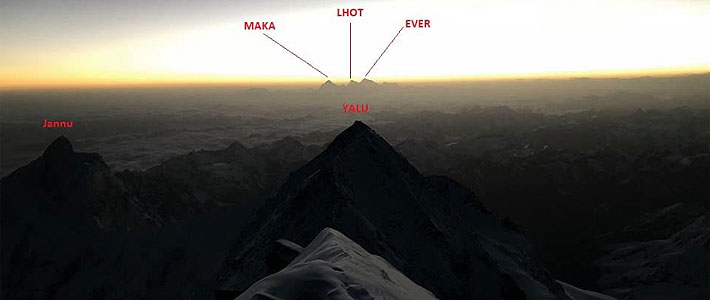 - Очилата му потвърждават, че не е бил на кулминацията в масива. Но това се установява още по-лесно чрез фотографските изображения на околните върхове. Когато си на върха, можеш да видиш Макалу (8485, 8463 м), Лхотце (8516 м) и Еверест (8848 м) над Ялунг Канг (или Западна Кангчендзьонга, 8505 м)). На неговите “снимки от върха” е само Макалу до Ялунг Канг, което означава, че ги е правил на около 150 метра под най-високата точка.