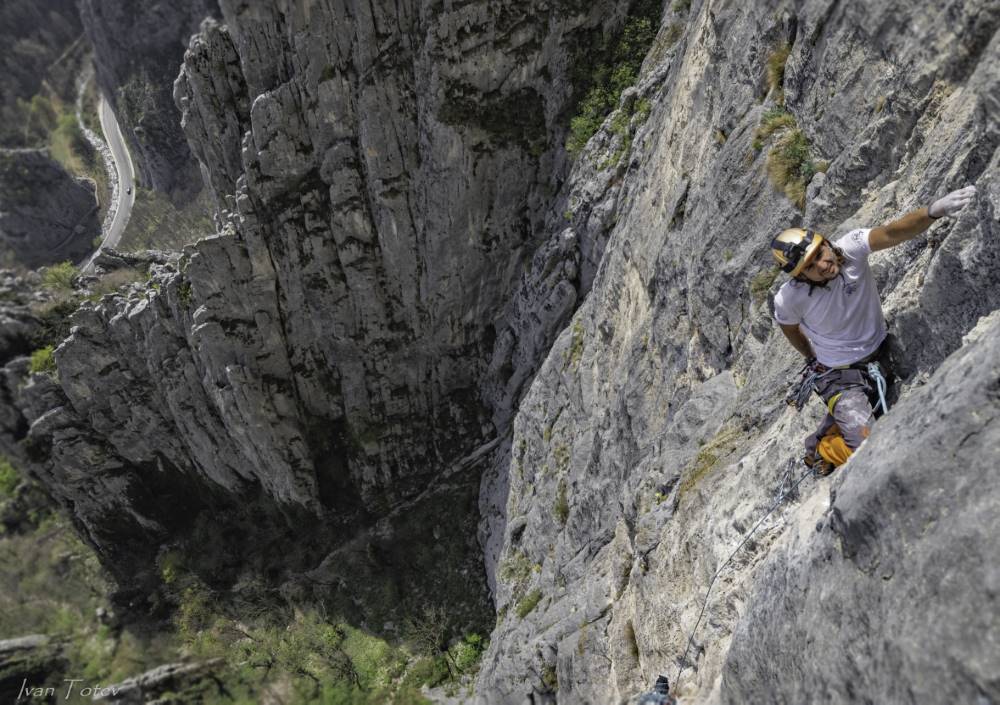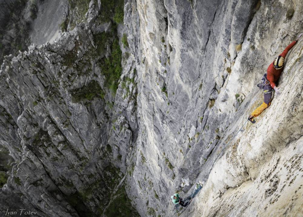 Знаех, че ни остава едно 6c, a после 5а-то можем да го изкатерим на челник. Силно се притеснявах дали имам сили за 6c-то, но бях сигурен, че ще дам и последната енергия в мен. Взех малко джаджи, за да не ми тежат - предпочитам лек и с малко включвания, отколкото тежък. Въжето тръгва много странно, с 4-5 метра разстояния между болтовете, без място за осигуровка. Странни движения, нетипични, хубави хватки, но в грешната посока… Ръцете ми почнаха да крампират, докато тръскам едната, другата крампираше, после като ги сменя, отново същото. Все едно не възстановявах, а само изпитвах болка, но се борех, разчетох го много добре и извадих късмет. Минах го. Всичко в мен ехтеше от болка, но мъчението не беше свършило. От тук трябваше само да се качим догоре, без да ни убие някое паве, и да си слезнем с 250 метра въже, джаджи и  всякакви глупости.