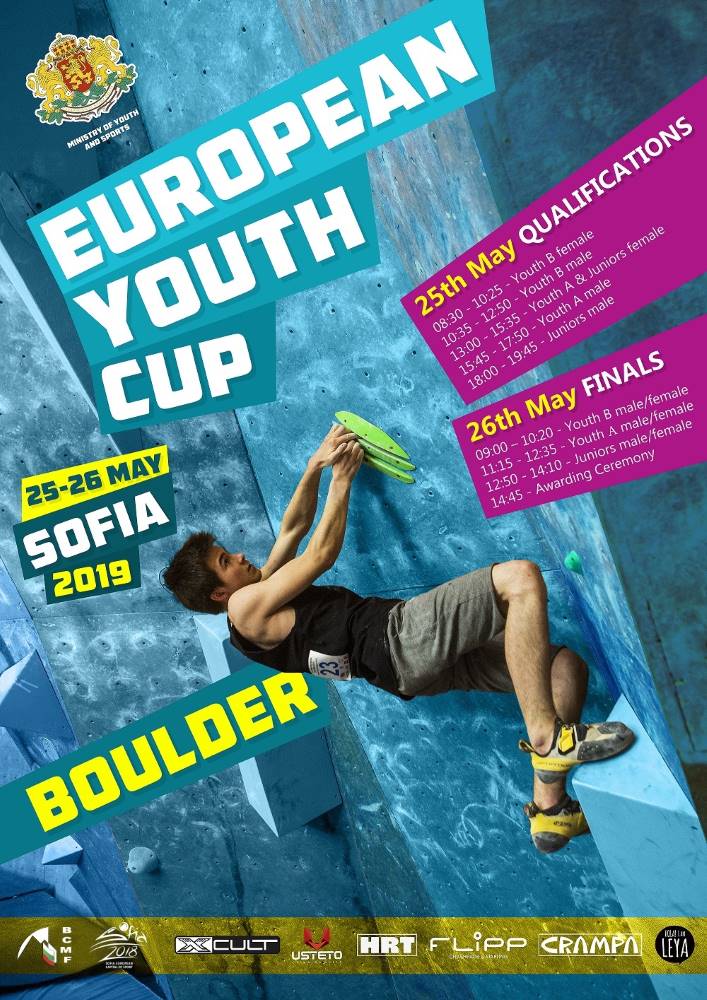 Завърши Европейската купа по боулдър за юноши и девойки в дисциплината боулдър, 25 и 26-ти май 2019 г., която за трета поредна година се проведе в София - катерачен център Уолтопия. Имаме трима финалисти - Стоян Петров, Петър Атанасов и Александра Тоткова - Алекс, която се бребори за златния медал в нейната възрастова група, 14-15 години! Много добре се представи и Димитър Русев - Митака, който не попадна на финал за един пропуснат топ.