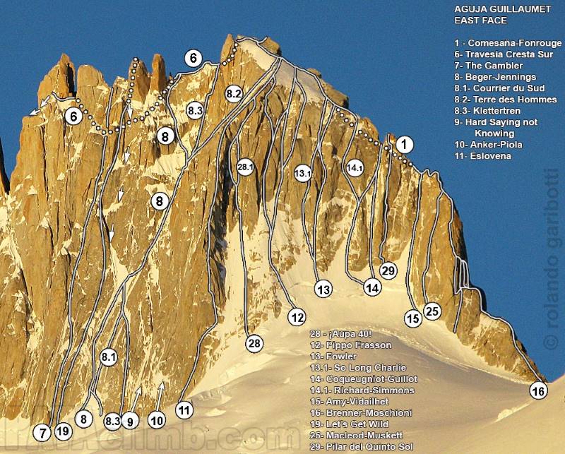 Маршрутите към Guillamet , източник: https://pataclimb.com/climbingareas/chalten/fitzgroup/guillaumet.html