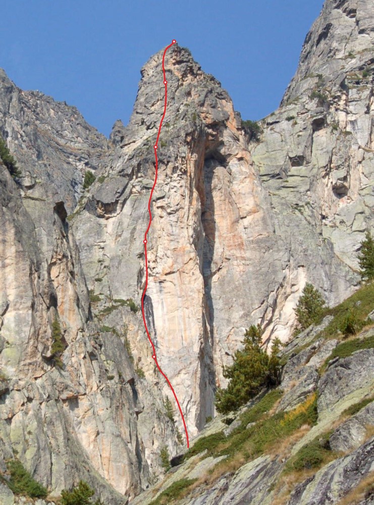 Новата линия се намира на Крайна Дяволска игла, състои се от 5 въжета (по около 35 метра), първите 3 от които - в силен надвес. Максималната категория за свободно преминаване е 7b.