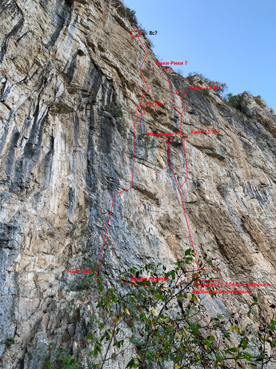 * По маршрутите има още работа по почистването, особено долу в основата. Като при всеки нов маршрут е възможно отчупшване на хватки и стъпки. Трябва да да се подхожда с внимание!