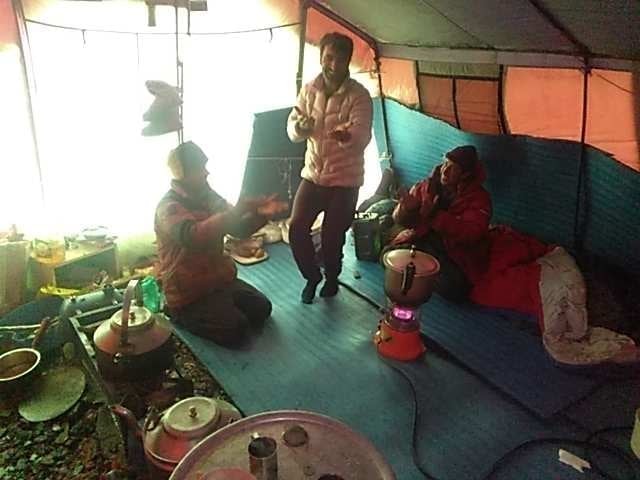Извън шумотевицата и пикантериите, първата експедиция, която започна работа във височина, вече фиксира парапетите до Лагер 1 при минус 25 градуса температури и това вероятно ще бъде най-топлото време за сезона в района, известен с изключително силните си ветрове (щорм), чиято скорост достига до 200 км/ч. Става дума за исландеца Джон Снори и пакистанците Али Садпара и 20-годишния му син Саджид.