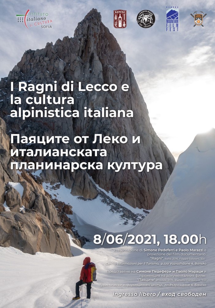 Италианските алпинисти Симоне Педефери и Марко Мараци ще представят в Банско дейността на „I Ragni di Lecco“/’Паяците от Леко“ – един от най-старите клубове на италианските планински водачи, чиято широка дейност е както в Италия, така и в чужбина. Целта на лекцията е да представи пред българската публика италианската планинарска култура и история в търсене на унисон с природата, както и устойчивия туризъм, при пълно зачитане на околната среда. Двамата алпинисти ще направят и няколко тура в Пирин планина с цел опознаване даденостите на района и обмен на опит.