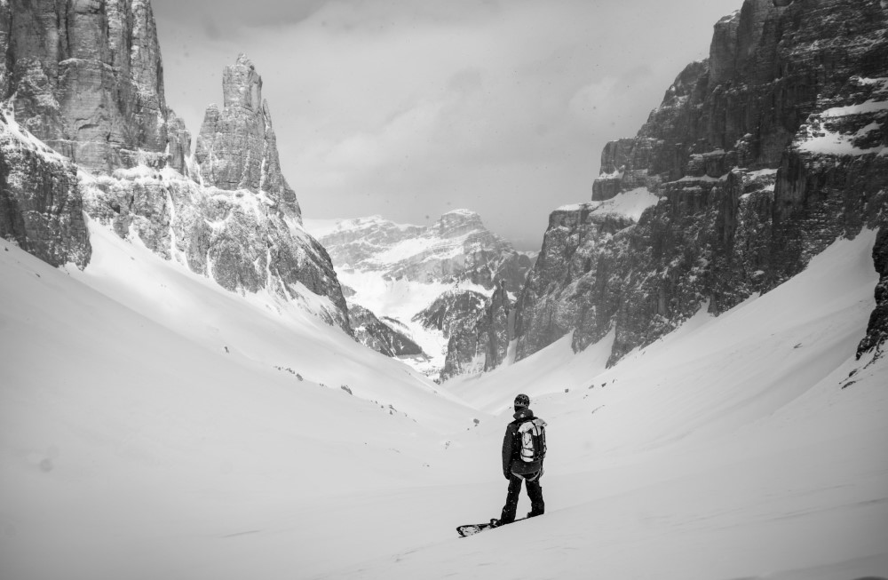„През празнотата“ е история за неповторимо прекосяване на Доломитите от група сплитбордисти и ски алпинисти. Те преминават алпийските празни писти, създадени от затварянето на ски курортите през зимата на 2020/2021 поради пандемията. Пътуване, което създава база за сравнение между пустотата на дивите райони и празнотата на туристическите места. Възможност да се постави под въпрос бъдещето на алпийските долини, ски културата и основната роля на общността на спортовете на открито от екологична гледна точка.