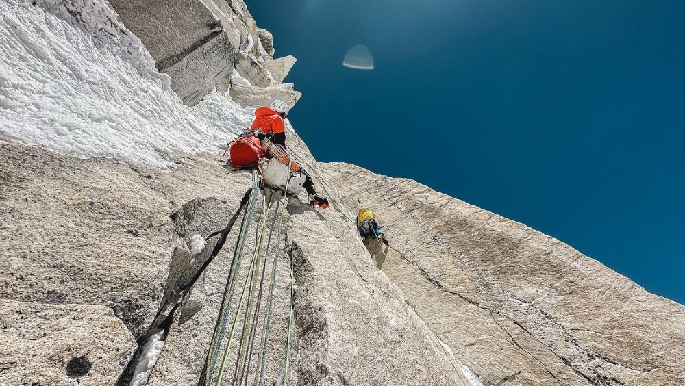 “Втория път се получи. Големите мечти изискват повече от един опит”, написа във Фейсбук Роджър Шели, който през 2019 г., заедно с Матийо Менадие и белгиеца Шон Вилануева, направи първия си опит за премиерен маршрут по този връх. Тогава обаче се наложи тримата да се откажат в последната част от изкачването си. Сега Шели разказа за наличието на много сняг, което е позволило на тримата членове на тазгодишната експедиция да достигнат до основата на стената със ски. В същото време обаче, обилните снеговалежи са направили участъка от Лагер 1 до Лагер 2 лавиноопасен, а пътят до Базовия лагер е представлявал “лабиринт от цепнатини”.