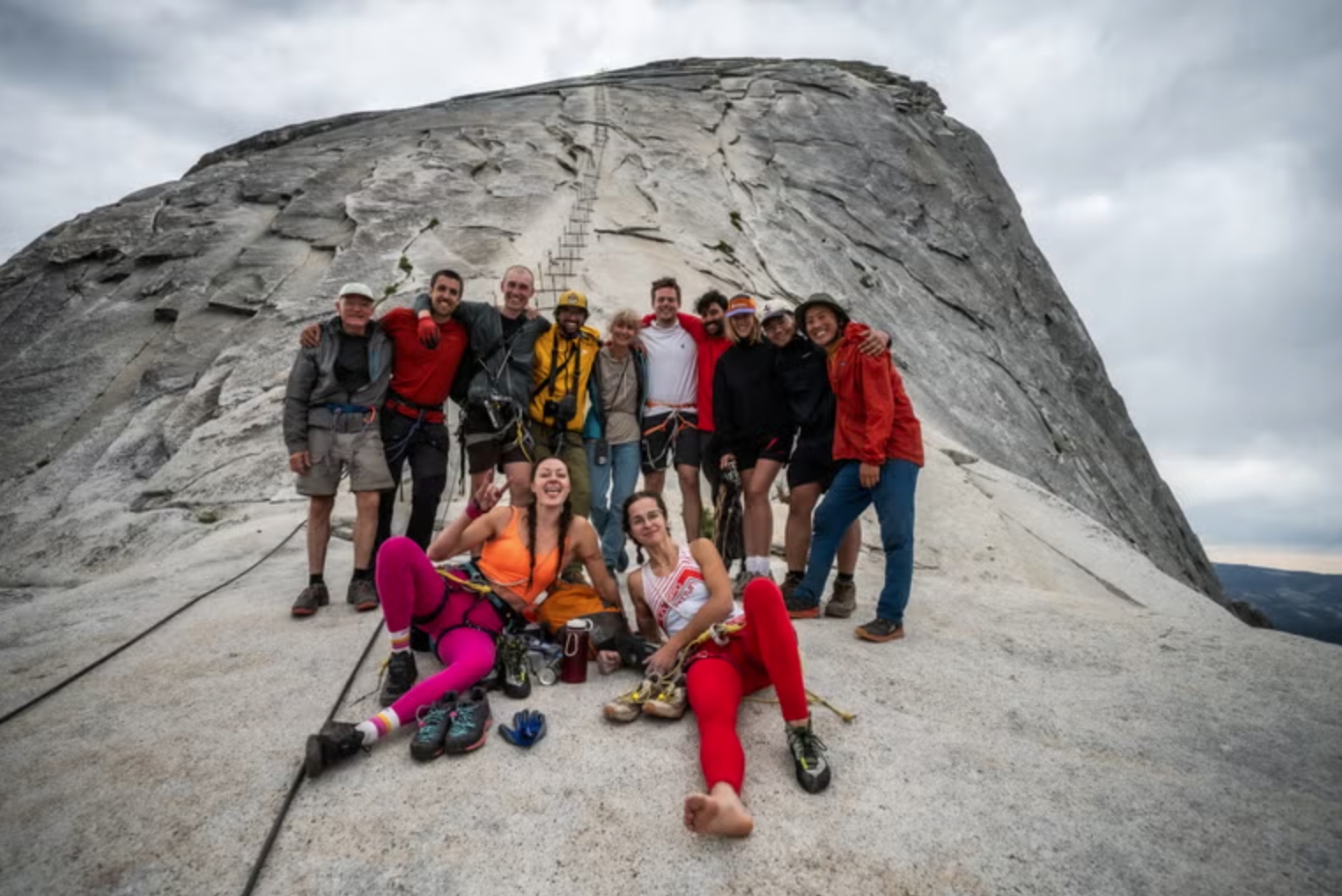 Кейт и Лаура на върха на Халф Доум с част от поддържащия ги екип