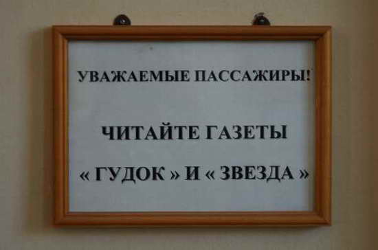 ТабелаОще във влака някои от нашите, живели преди в тази държава, обърнаха внимание на установените порядки, предимно от военно естество. Най-вече трябваше да се реши въпросът “А кто старший?”, задаван почти непрекъснато от тук насетне, от всеки който ни срещне, и сме повече от двама. Наследено било от комунизма, ако по улицата се движат хора, то непременно те да са група, под ръководството на “Старший”. И ако ви срещне милиционер и ви пита “Кто старший?”, непременно някой следва да се признае за такъв. При отрицателен отговор милиционерът продължава да чака, или може да приеме, че отговарящия му е старший, само защото отговаря вместо групата, въпреки, че отрича това. Алтернативите можели обаче да бъдат доста неприятни, а именно – неорганизираната група да се откара под конвой до участъка където да и се определи старший, първоначално на килия вероятно, а дотогава сам милиционерът да поеме тая почетна длъжност, или да се установи на място старшия, и да му се търси отговорност за това дезертьорство. Както и да е, стана ясно, че в Русия над всеки задължително трябва да има старший....