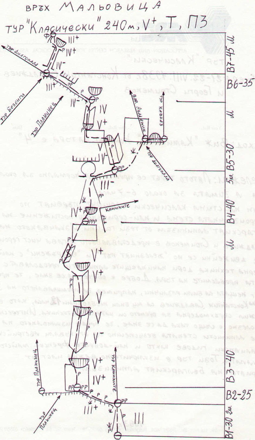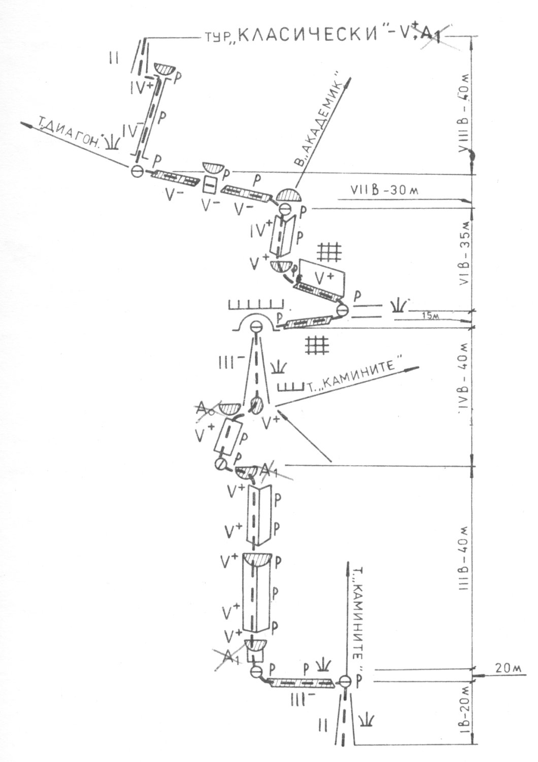 Вариант – излизане вляво по тур Диагонала преди последното въже по камината.