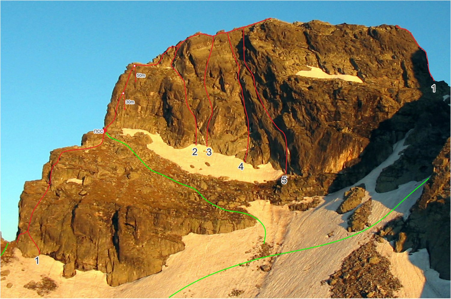 Първо изкачване: 08.1934 – Александър Белковски, Руди Давидов и Хари Хаимов
