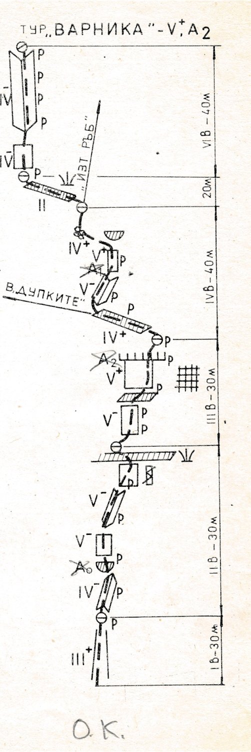 6.9.1949 г. Вариантът с навлизане към горната част на стената, отбелязан на топто с "b", е преминат от Георги Атанасов и Младен Дойчинов на 6.9.1949 г.