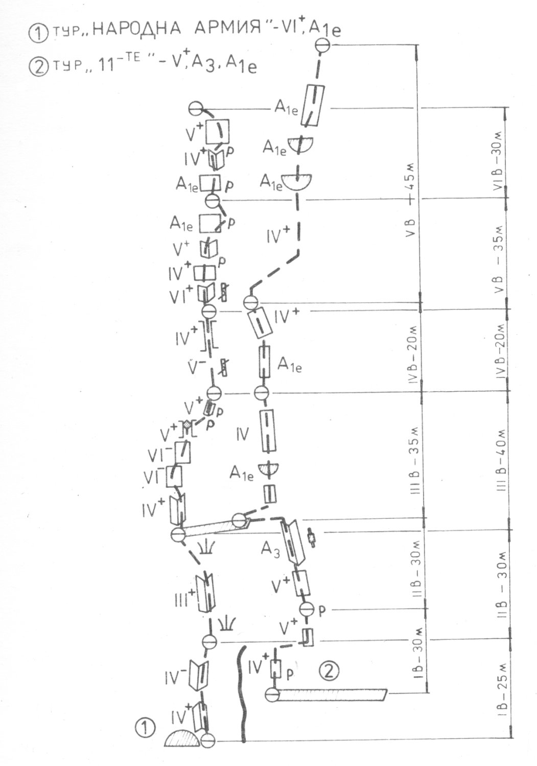 Инвентар: въже 9/40-2, карабинери-25, клинове-15, стълбички-4, примки-8, клеми-7