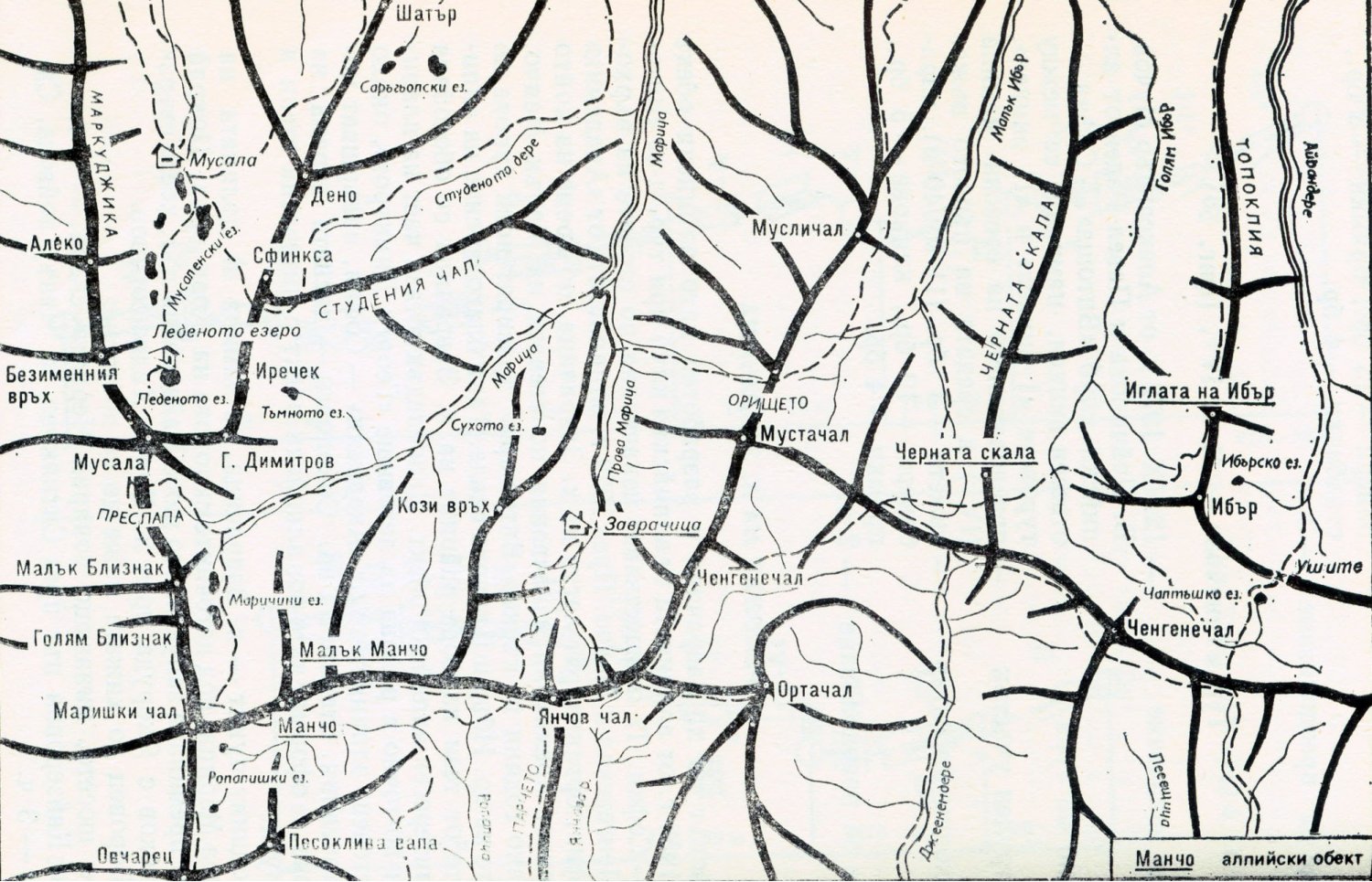 Карта с катерачните обекти в източната част на Рила (районите на хижа Мусала, хижа Заврачица, хижа Белмекен)Рила често се нарича "люлката на българския алпинизъм". Още през 1921-22 година след създаването на Юношеския туристически съюз, членовете на Юношеското туристическо дружество в град Самоков започват да организират първите планински излизания. След това започват да се трасират и по-трудни - алпийски маршрути.