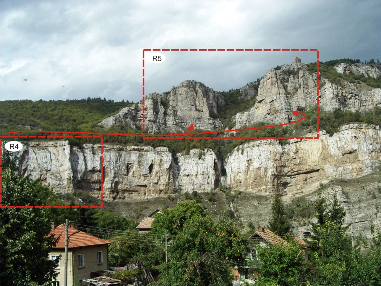 Септември и Кръста (около 750 м). Септември е иглата с паметника, построен в памет на антифашисти от 1923 г., хвърлени от скалите. Кръстът е първата голяма кула вляво от Септември. Туровете по Септември започват вляво от отвора на Ръжишката пещера. Понякога тече вода от чешмата на паметника.
