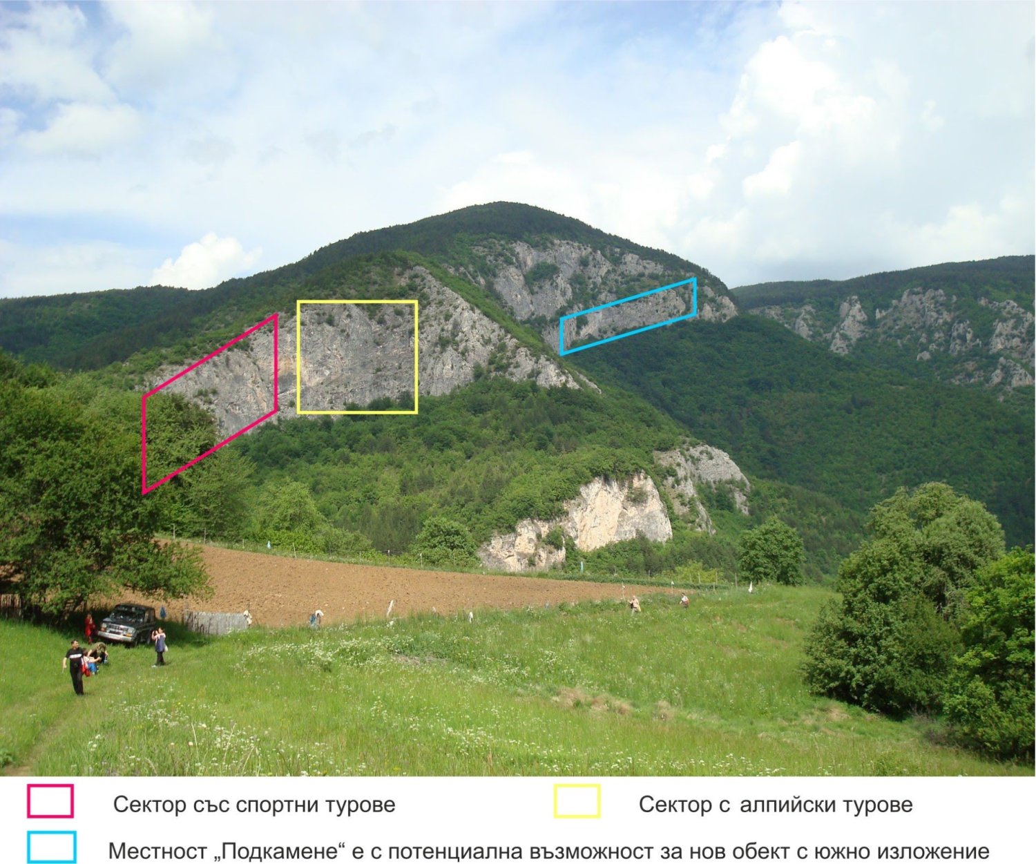 Голям скален венец (1000 м н.в.), който се намира всред няколко други скални фомирования. Мястото се намира вляво над с. Югово. Скалния венец е с формата на полукръг като в лявата си част гледа на изток (където са спортните турове) а в дясната на юг. По пътеката към скалите има чешма. Под скалите има полянка, на която може да се палаткува.