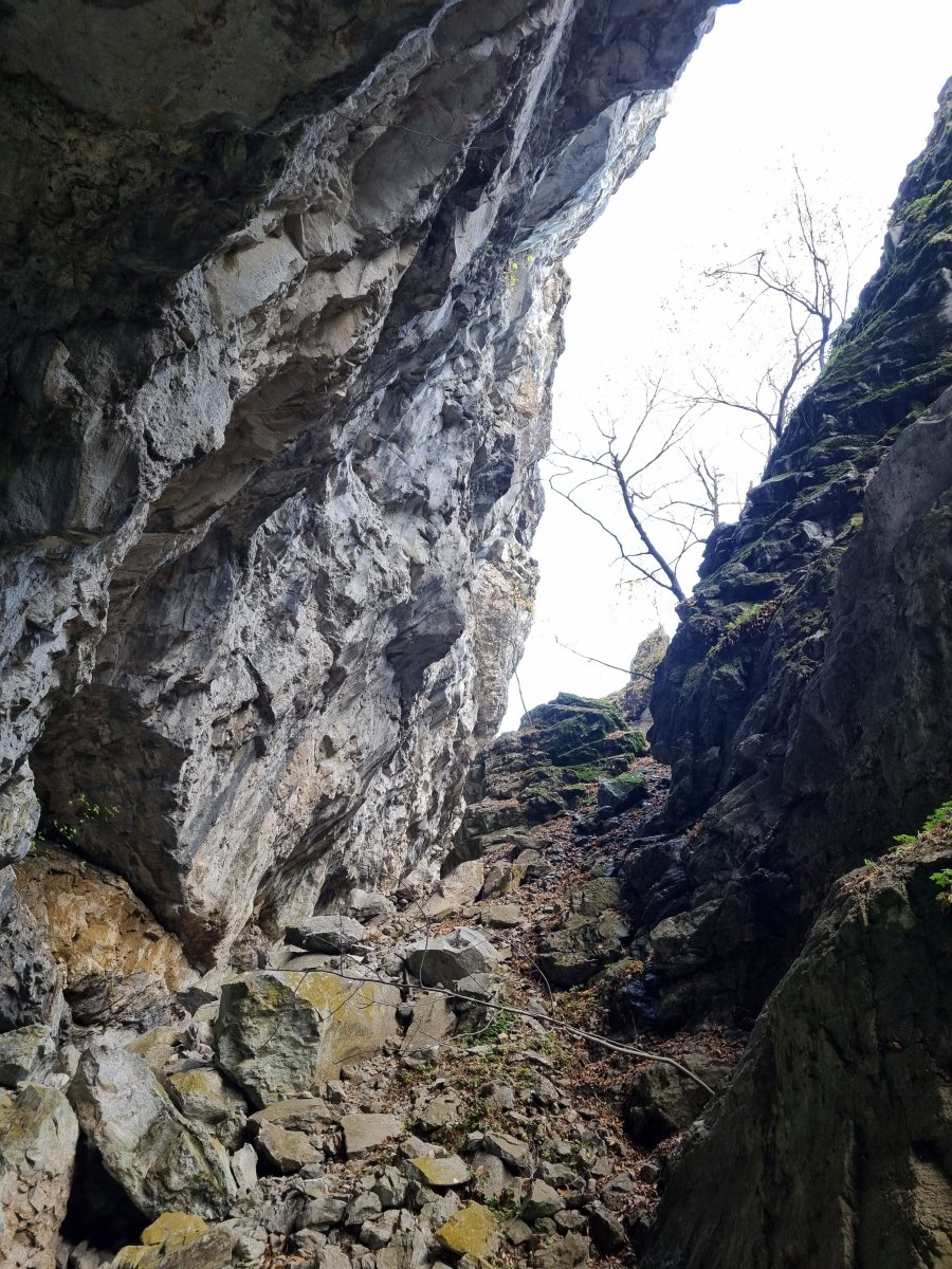 Вече пеша се влиза през порта в двора на параклиса и се хваща едва видима пътека зад и вдясно от него. Пътеката леко се изкачва диагонално по склона в посока югоизток и след 8-10 мин се достига началото на процепа, ок. 10 мин и 100 м денивелация.