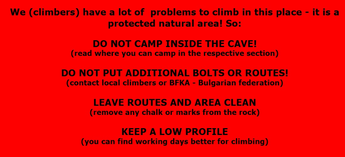 - Забранени са спортни активности (и катерене) от 18 до 7 ч.
