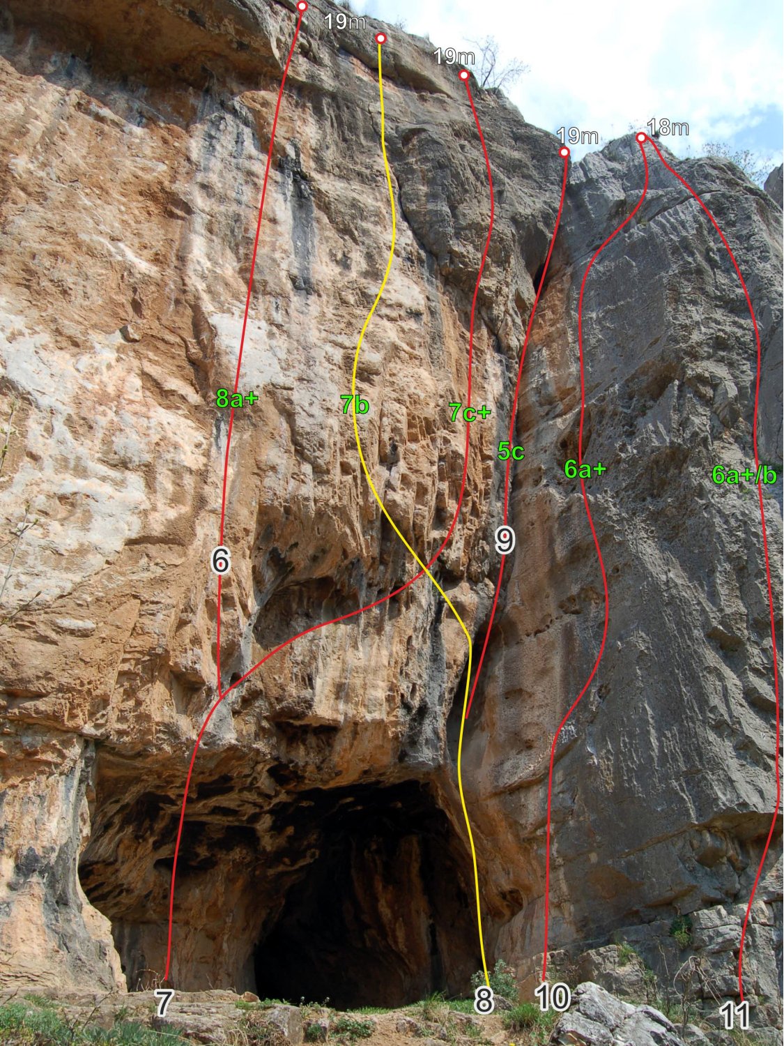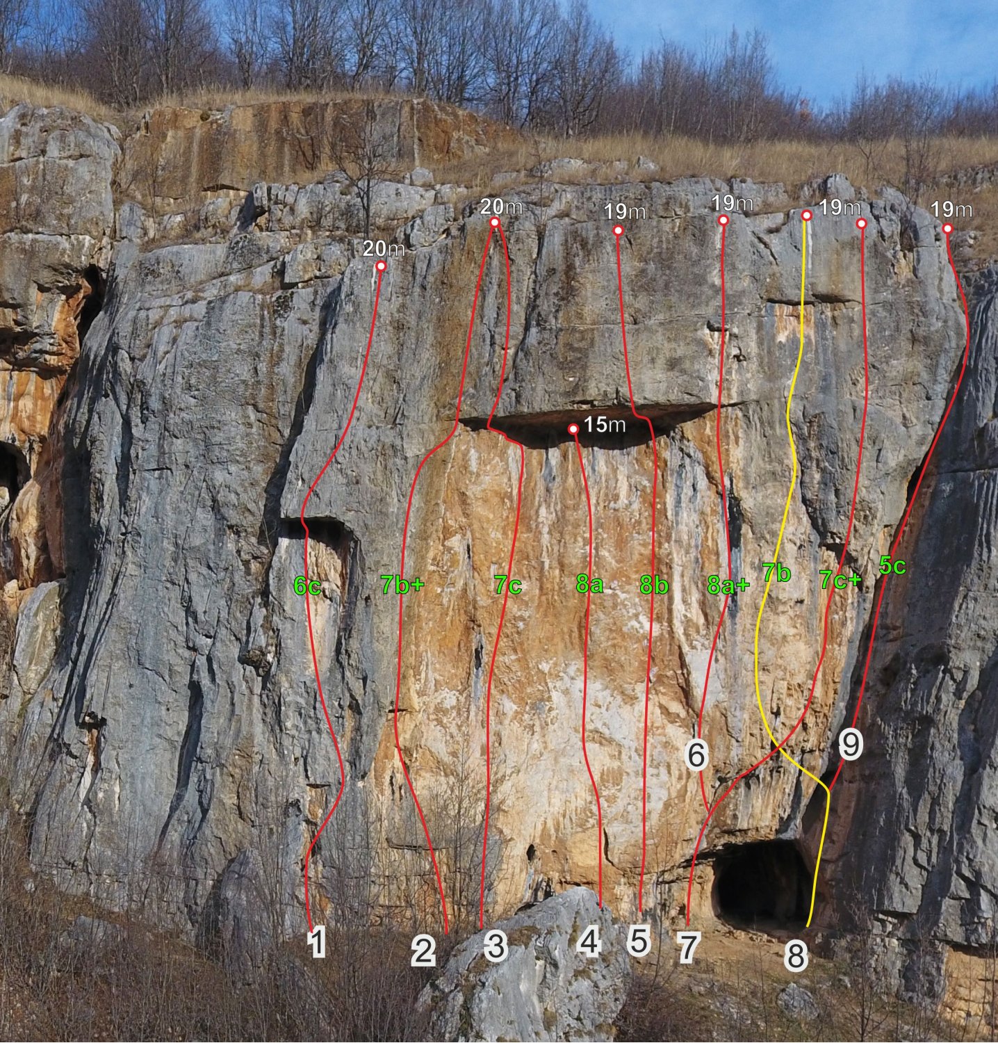 Категории: 5c ÷ 8b+ (5c, 6a+, 6a+/6b, 6c, 7a, 7b, 7b+, 7c, 7c+, 8a, 8a+, 8b, 8b+)