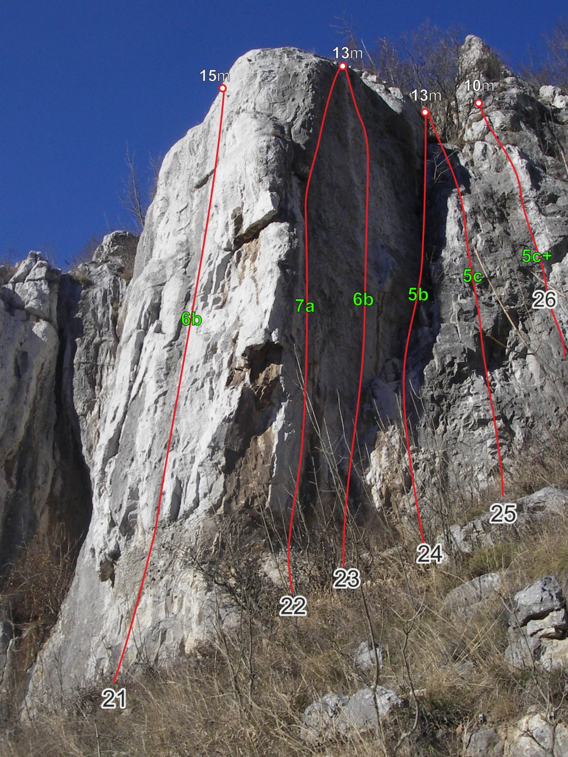 Категории: 5b ÷ 7c+ (5b, 5c, 5c+, 6a, 6a+, 6b, 6b+, 6c, 7a, 7a+, 7b, 7b+, 7c, 7c+)