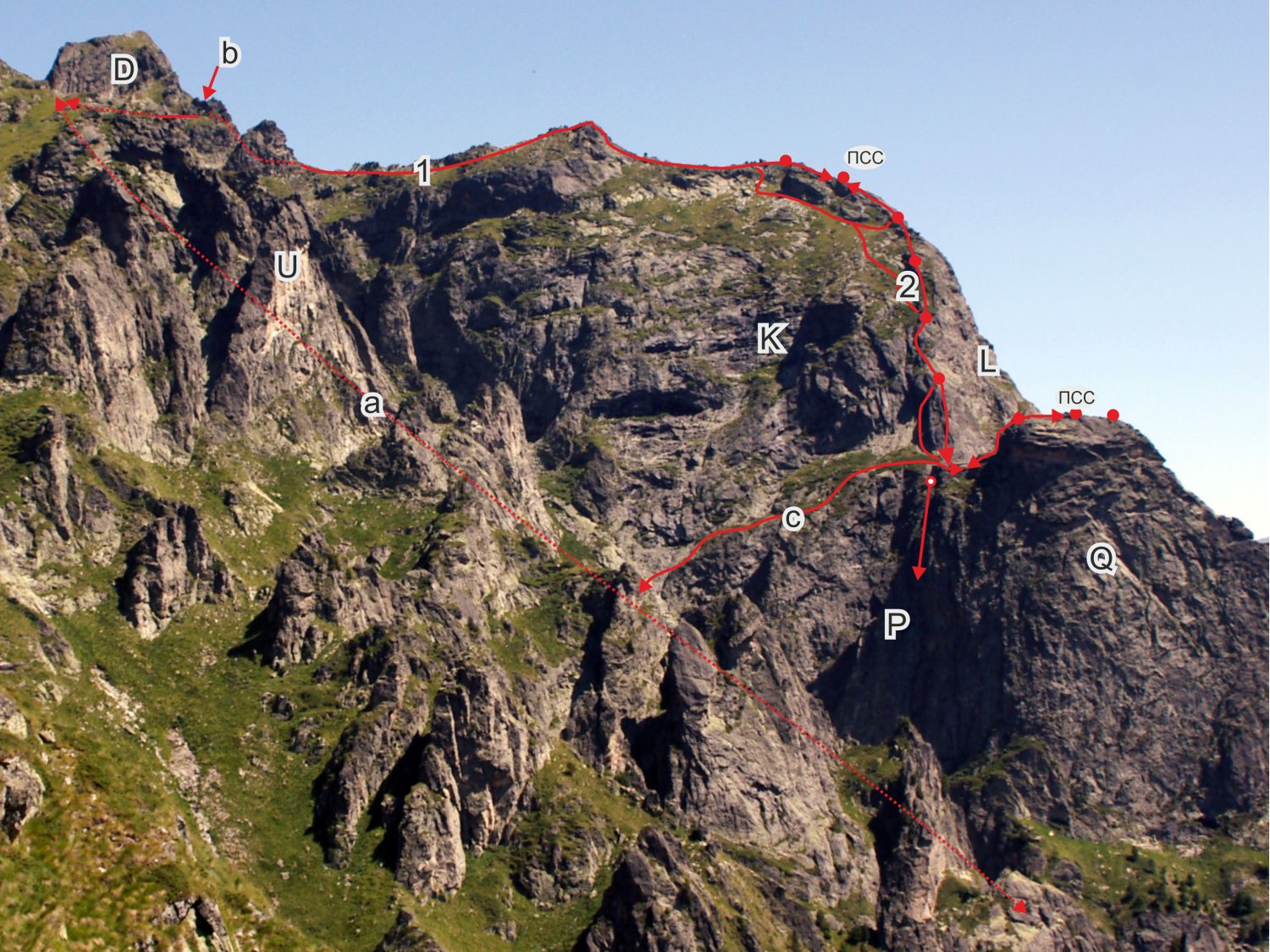 c - Траверс (2 категория) по западните склонове на Двуглав, по който може да се стигне от Синия улей до премката между Двуглав и Иглата и обратно.