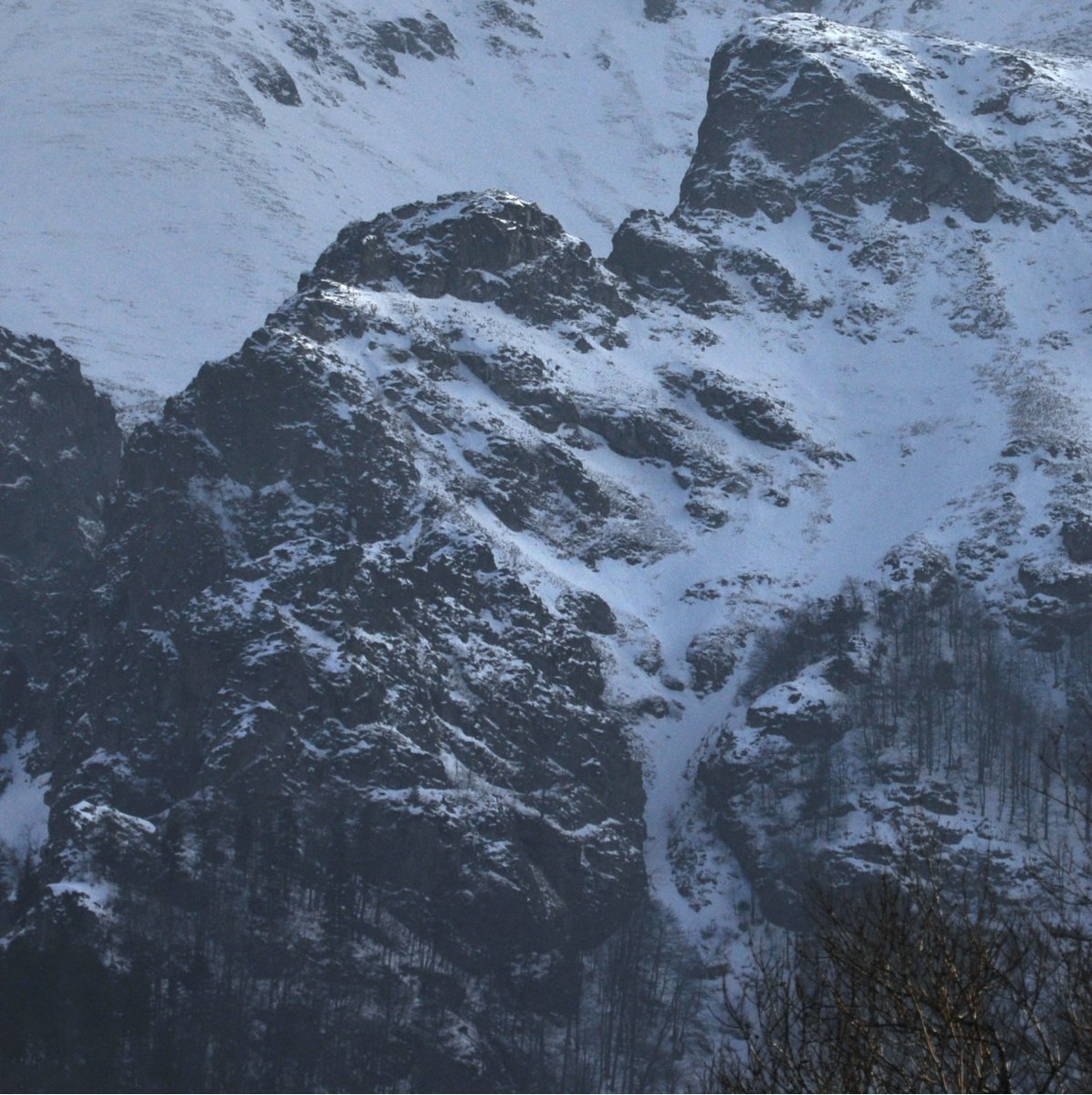 От лятната пътека следва продължително изкачване по снежни склонове до достигане билната зимна маркировка от вр.Ботев към върха на Млечния чал. От там надолу по ел.захранването или зимния път с парапета до Пещите и х.Плевен.
