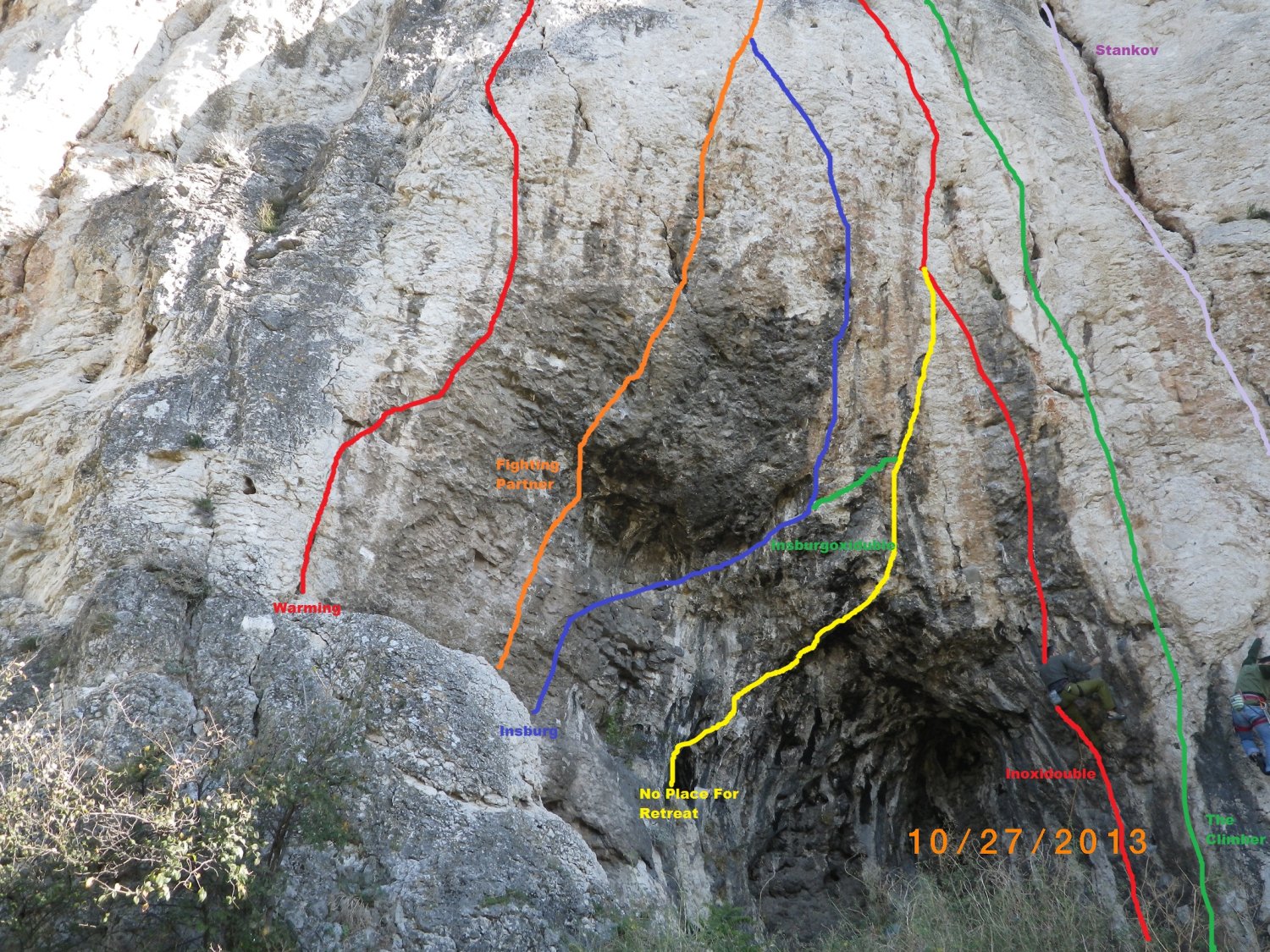 Категории: 6a+ ÷ 8b+ (6a+, 6b, 6c, 6c+, 7a, 7a+, 7b, 7b+, 7c, 7c/7c+, 7c+, 7c+/8a, 8a, 8a+, 8a+/8b, 8b, 8b/8b+, 8b+)