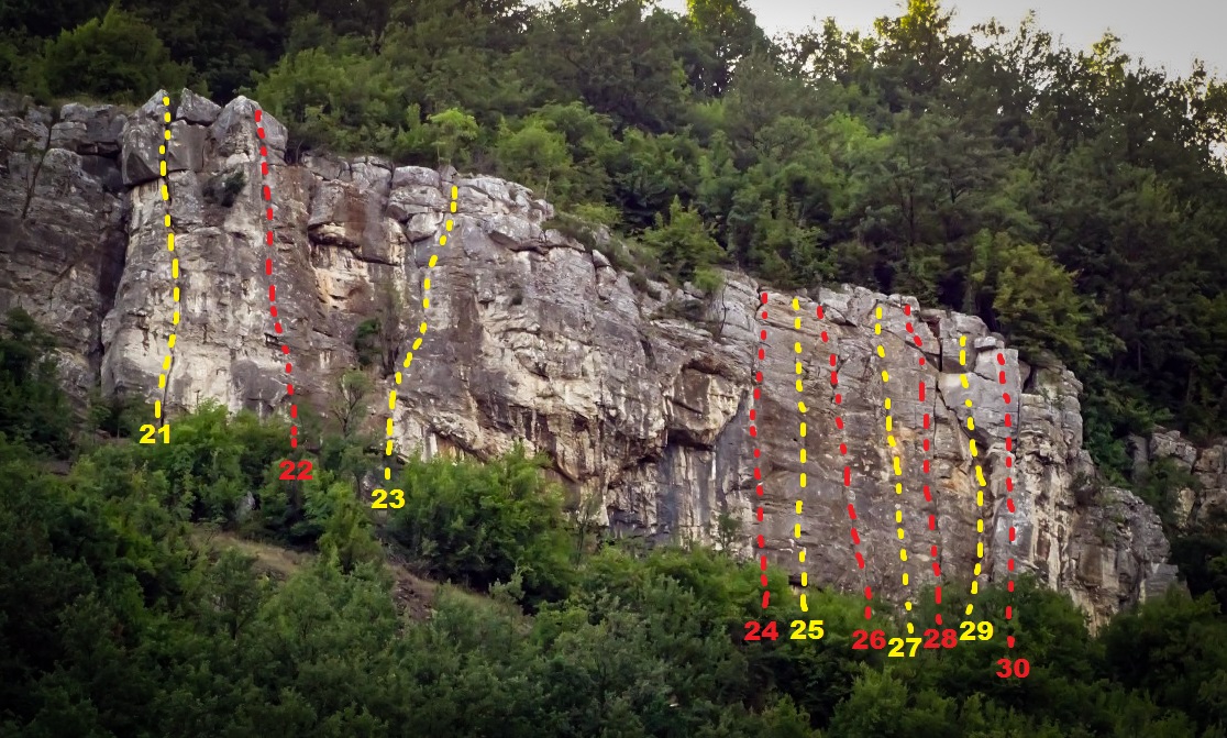 Всеки маршрут завършва с 2 лепени клина, за рапел или спускане.