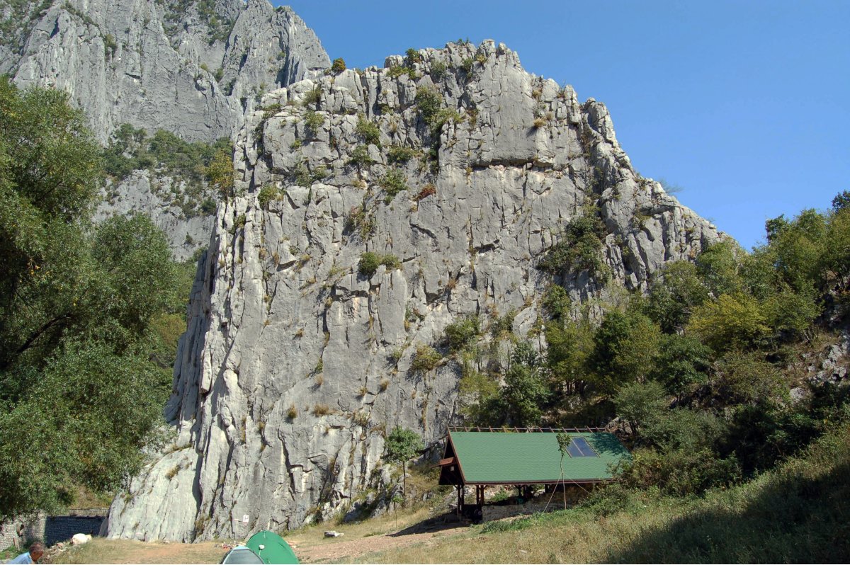 Северна стена. Тази стена е по-близо до Алпийския дом и гледа към реката. В сянка през целия ден.