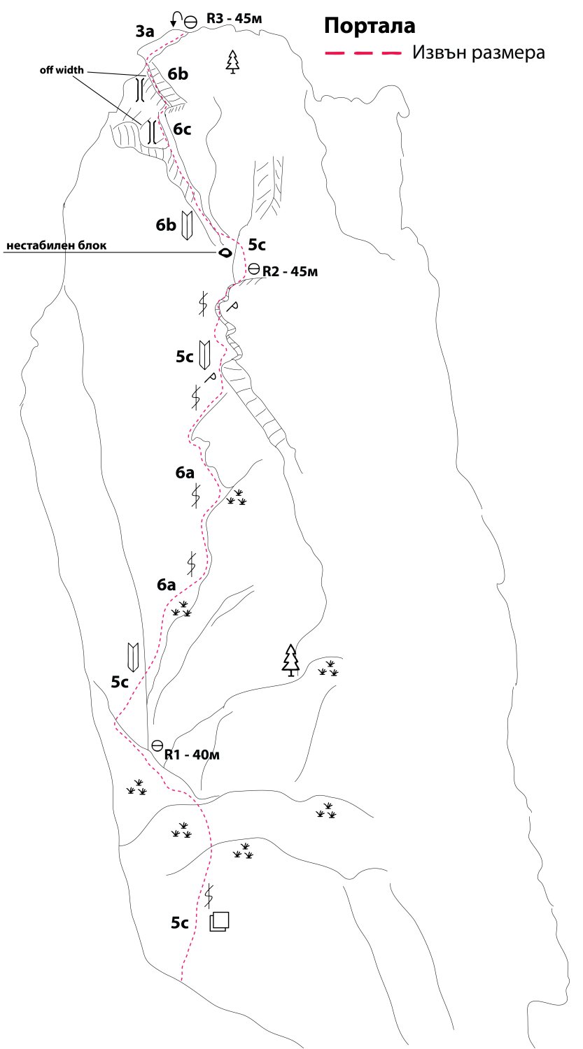 Инвентар: Френдове и клеми, двойно въже. Да се дублират номер 3 и 4. Добре е да има и номер 5.