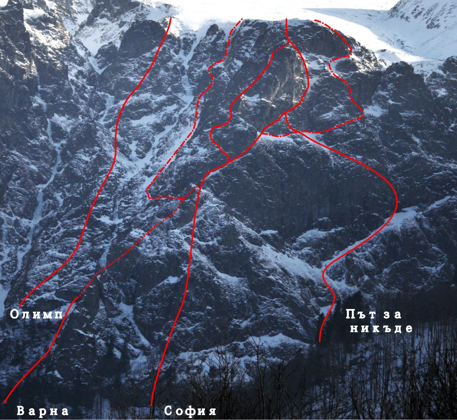 От х.Плевен вляво от началото на голямата писта, по маркираната със зелена боя пътека за пещ. Водните дупки. След достигане на пещерата се продължава по слабо изразената пътека да достигане на третия улей, в който се отича водата от водопадите. За водопадите се продължава нагоре през праговете, а за Варна – наляво през малки прагове. Продължава се непосредствено под скалите и отново се влиза в гората. Дотук се достига в зависимост от снежната покривка за 2 ч в най-добрия случай, и за неопределено време при много дълбок сняг. За туровете наляво от "Варна" се навлиза в кулоара, който е лавиноопасен.